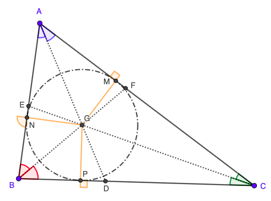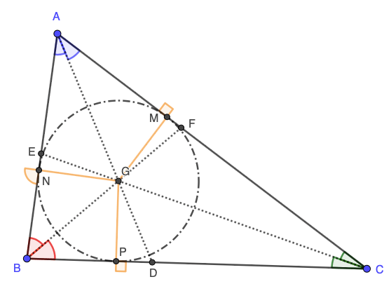 Assim, veja que o incentro está a uma mesma distância de cada um dos lados do triângulo.