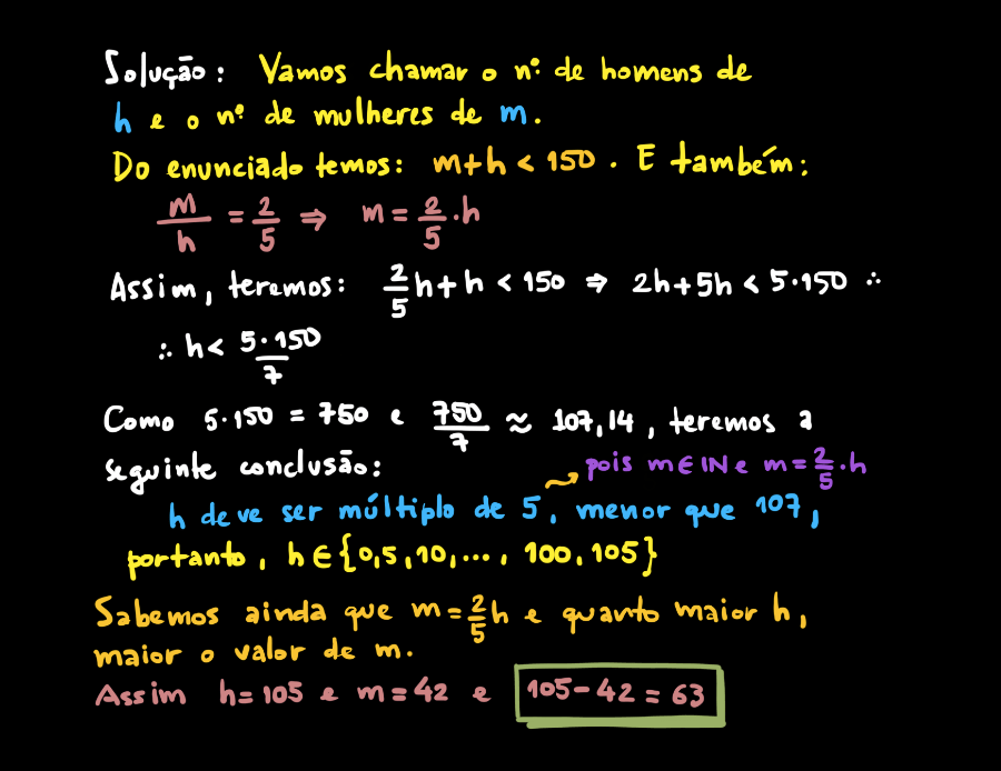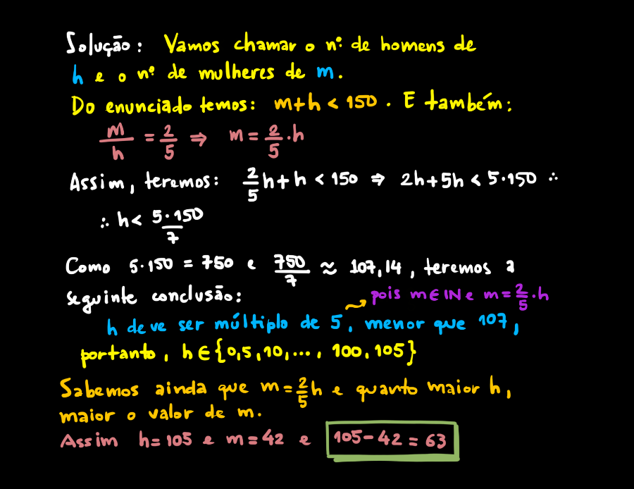 Este, de forma geral não é difícil. Sugerimos que você tente resolver antes de ver a solução. Que segue abaixo. Mas, não perca muito tempo. Caso tenha dificuldade, venha ver a solução.