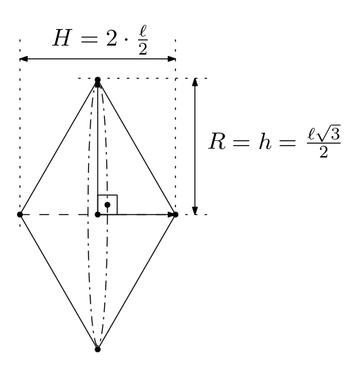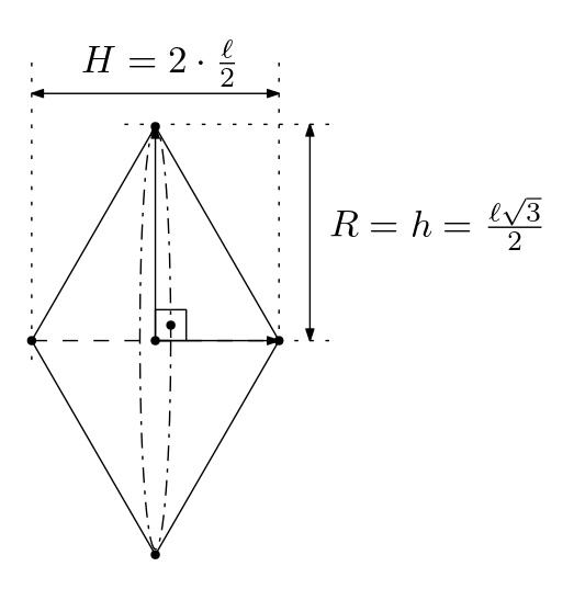 A revolução de um triângulo equilátero de cm de lado, em torno de um de seus lados, gera um sólido de volume igual .