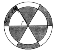 Uma empresa de produtos químicos tem o seguinte logotipo, composto por dois círculos concêntricos divididos em setores circulares de cada. Se o raio do maior círculo medir cm e o do menor medir , toda a área hachurada (em cinza) mede .