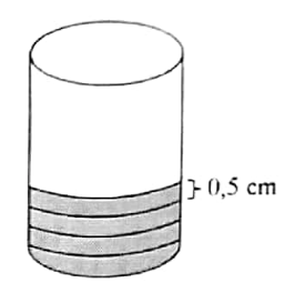 O comprimento de cada volta da fita em torno do cilindro corresponde ao comprimento do círculo da base do cilindro: cm. A altura do cilindro é de cm e cada fita tem cm de espessura. Assim, serão necessárias fitas. Então o comprimento total de fita será de cm. Ou seja, m. Opção B.
