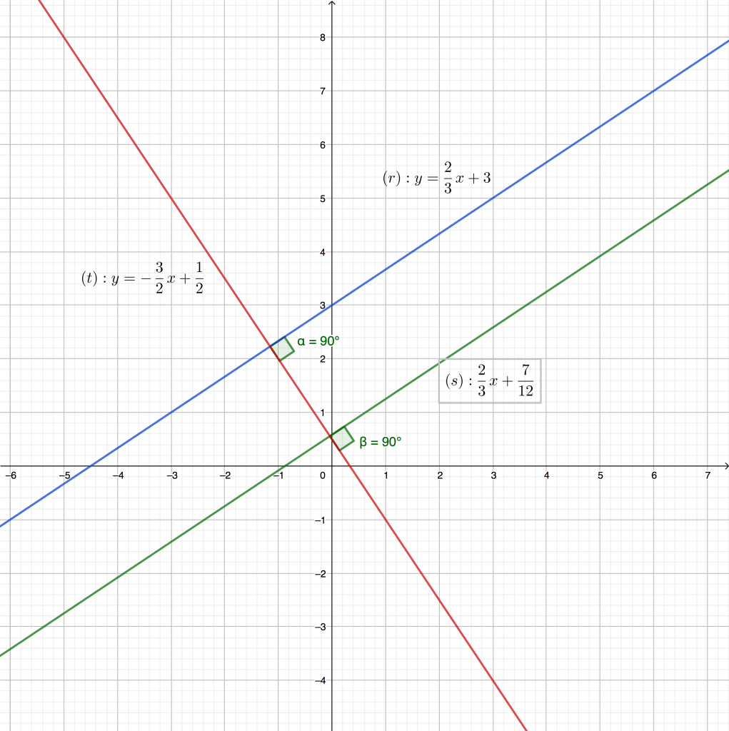 Passemos então às retas e : como , portanto, e são concorrentes e perpendiculares.